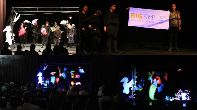 Juni 2017: Schwarzlichttheater eines beeindruckenden Theaterprojekts, welches Staunen hervorbrachte. Rund zehn Schauspieler führten ein Musical im Schwarzlichttheater (die Pumpe, Berlin) vor. Erst beim Abschluss-Applaus nahmen die Schauspieler ihre Masken ab und die Zuschauer staunten, als Menschen mit Handicap zum Vorschein kamen. Die Menge tobte und während der Vorführung sah man lediglich die Requisiten und Zähne. Ein gelungenes Projekt mit sozialem Gänsehaut-Feeling. Die Regisseurin plant weitere Schwarzlicht-Projekte, um Zähne richtig leuchten zu lassen.